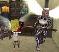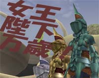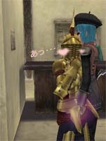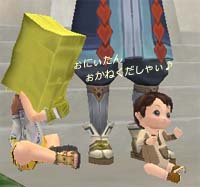 そこでちょっと戯れていたら、謁見者の後ろをヒヨヒヨ何かがついてくる!